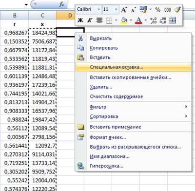 Рис. 5. Вызов контекстного меню и выбор команды «Специальная вставка».