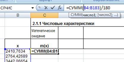 2.1.1. Рассчитаем числовые характеристики: