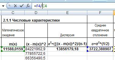 2.1.1. Рассчитать числовые характеристики: математическое ожидание, дисперсию, среднее квадратическое отклонение (стандартное отклонение), коэффициент вариации.