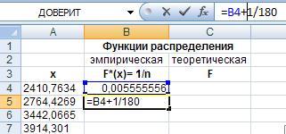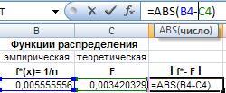 Рис. 37. Ввод формул для расчета наибольшей разности между эмпирической и теоретической функция ми распределения.