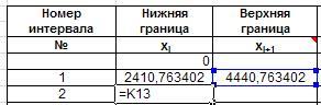 – разность значений функции распределения в начале i‑того интервала, и значения функции распределения в конце i‑того интервала.