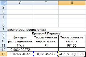 В следующем столбце рассчитываем теоретические частоты n*pi, для чего введем в ячейку U13 формулу=ОКРУГЛ(T13*180;0).