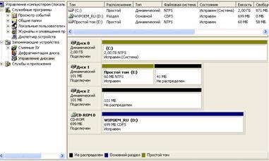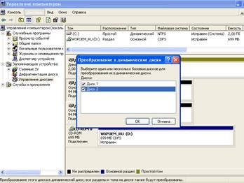 С помощью оснастки “Администрирование\Управление компьютером\Управление” дисками сделайте новые винчестеры динамическими. Сделайте скриншот оснастки “Управление дисками”, в которой будет видно структуру существующих дисков вашего ПК.