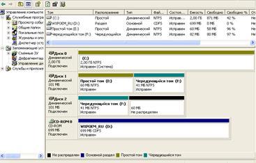 На этом же винчестере в оставшемся месте создайте чередующийся том. На втором добавленном винчестере (“Диск_2”) должна быть создана вторая часть чередующегося тома, причем обе части будут иметь одинаковый размер.