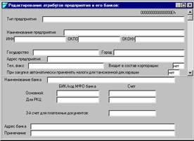 Сведения обо всех организациях (включая собственную) содержатся в каталоге "Организации и банки" В модуле "Настройка" заполните этот каталог. Если в каталоге уже есть информация, Вы увидите список организаций, если каталог еще не заполнен, то на экране появится запрос "Введите информацию о собственной организации".