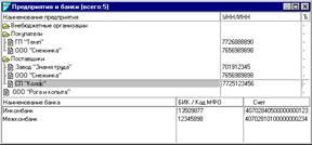 Получите краткий список предприятий и банков (нажмите Ctrl+P