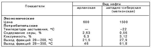 §2. Оценка конкурентоспособности арланской и западносибирской (мегионской) нефти