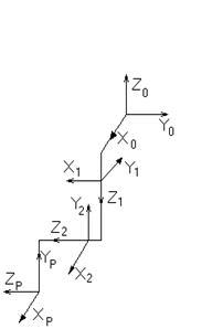4. Упрощённая конструкция манипулятора со связанными системами координат