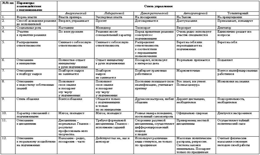 Демократический стиль управления является прямой противоположностью авторитарного стиля управления, следовательно, для того, чтобы понять сущность демократизации управления, необходимо рассматривать ее в сравнении с авторитарным стилем управления.