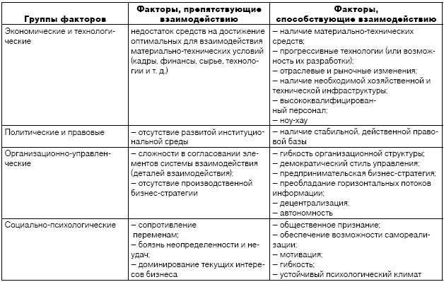 Факторы, влияющие на взаимодействие субъектов малого и крупного предпринимательства