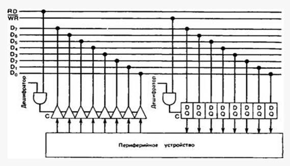 Для наиболее простого соединения периферийного устройства с шиной компьютера следует использовать порты ввода-вывода. Порт ввода представляет собой ряд тристабильных вентилей, а порт вывода является регистром.