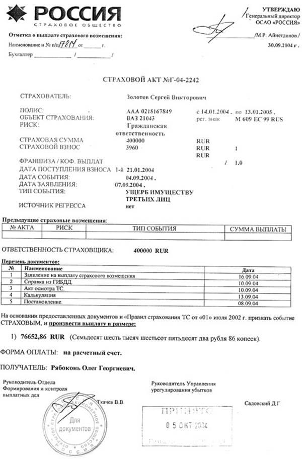 5) при наступлении страхового случая произвести выплату страхового возмещения и другие выплаты в размере, порядке и сроки, предусмотренные договором. При этом сумма всех выплат по всем договорам страхования, действующим в отношении данного объекта страхования, не может быть больше суммы действительного ущерба и действительных затрат.