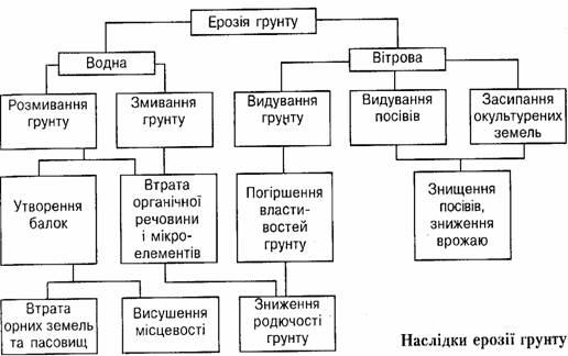 Шкідливий антропогенний вплив, а також розгул стихій, природних та посилених людиною, завдає ґрунтам величезної, інколи непоправної шкоди. Це, насамперед: