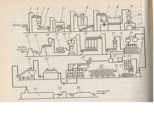 Аппаратурно-технологическая схема производства шоколада и какао-порошка .