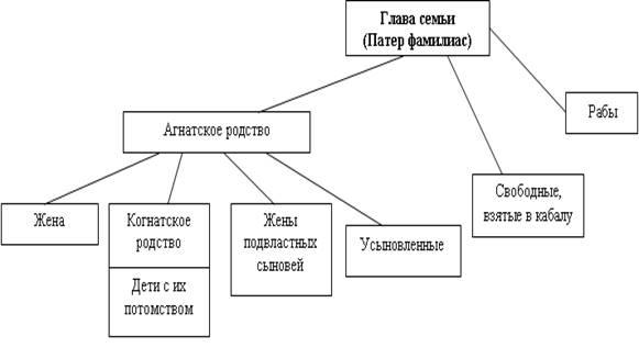 . Не признавались ими не эманципированные (освобождённые от власти римского главы семьи patria potestas, утратившие агнатскую связь), не другие когнаты (от лат. cognatus – кровный родственник; кровные родственники по мужской или женской линии, не находившиеся под властью главы данной семьи).