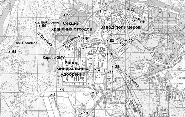 2. Высокое содержание меди и цинка в снеге, в 1,5-5 раз превышающее фон, установлено на участке 56, который находится вблизи шламонакопителя отходов Кирово-Чепецкого химического комбината. В 3 раза превышала фоновое значение концентрация свинца Pb в снеге участка 20, расположенного рядом с автодорогами. Максимальное превышение фона (в 15 раз) установлено для ионов цинка на участке 3, что может связано с близостью железной дороги.