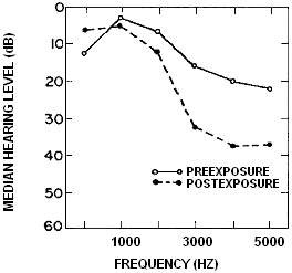 Prolonged exposure to noise of a certain frequency pattern can cause either temporary hearing loss, which disappears in a few hours or days, or permanent loss. The former is called temporary threshold shift