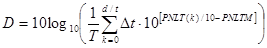 3. Then NEF = , where the sum is taken over all events in a 24-hour period. A little ciphering will show that this last calculation is equivalent to adding the products of sound intensity times time for all events, then taking the dB equivalent of this. The subtractor 82 is arbitrary.