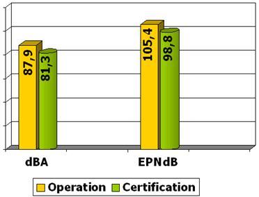 Tupolev 154M has the same aerodynamics as Tupolev 154, thus the necessary thrust for both of them during approach is almost the same. Tupolev 154M has more powerful engines and it can carry more payload. Its maximum landing weight is 2 tons greater than that one of 154. Noise parameters are different for these aircraft (table 6.2), and the calculated noise levels slightly differ as well.