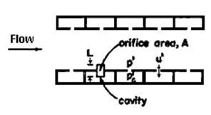 The perforated-plate-and-honeycomb combination is similar to an array of Helmholtz resonators; the pressure in the cavity acts as a spring upon which the flow through the orifice oscillates in response to pressure fluctuations outside the orifice.