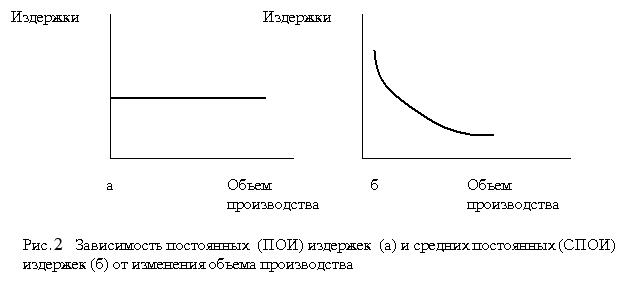 Что касается средних постоянных издержек (на единицу продукции), они снижаются с ростом объема производства и увеличиваются при его снижении (рис. 2 б).