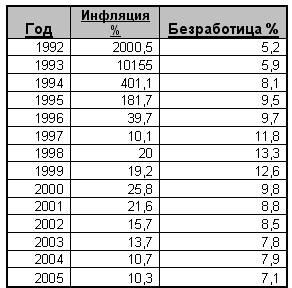 В условиях трансформационного кризиса в России нет никакой функциональной зависимости межу приростом ВВП и безработицей, т.е. закон Оукена не работает, а так как безработица находится в обратной зависимости с инфляцией, то следовательно, обратная зависимость наблюдается так же между приростом ВВП и инфляцией (