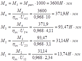 Передаточные отношения ступеней: