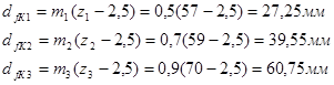 а) делительные диаметры d=mi*