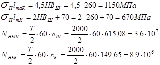 -число эквивалентных циклов нагружений для шестерни и колеса: