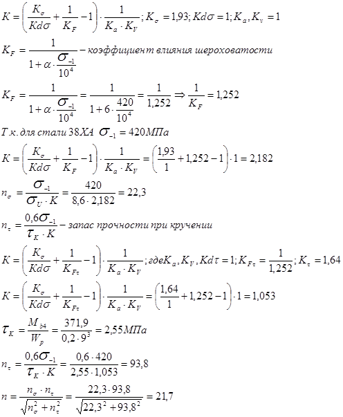 Таким образом условие прочности выполняется: n=21,7>[n]=1,5..1,7