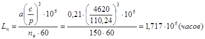 Расчет ведем по формуле: а - коэффициент, учитывающий влияние качества метала колец и тел качения