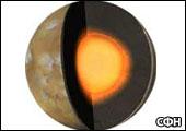Кора богата оливином и железистыми окислами, которые и придают планете ржавый цвет. Химический состав поверхностного слоя: кремния 21%, железа 12,7%, серы 3,1%.