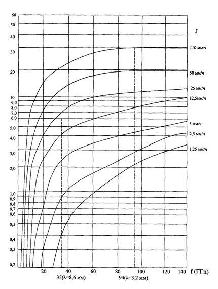 для длины волны мм коэффициент ослабления радиоволн при интенсивности дождя :