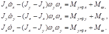 В процессе исследований космический аппарат рассматривается, как абсолютно твердое тело, не содержащее каких-либо движущихся масс [1]. Если триэдр жестко связанных с телом осей Oxyz (связанная система координат - ССК) направить так, чтобы они совпали с главными центральными осями инерции, то центробежные моменты инерции обратятся в нуль и система уравнений Эйлера, описывающая динамику вращения КА вокруг центра масс, примет вид: