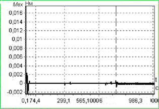 Таким образом, предложенный на основе фильтра Калмана алгоритм позволяет идентифицировать отказы двигателей стабилизации КА, в том числе, отказы с малой остаточной тягой (около 15%) при наличии шумов измерений и действии возмущающих моментов.