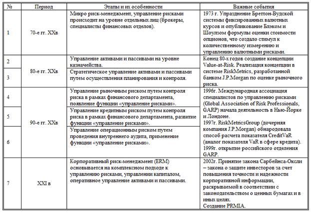 В истории развития риск-менеджмента можно выделить следующие основные этапы (табл.1).