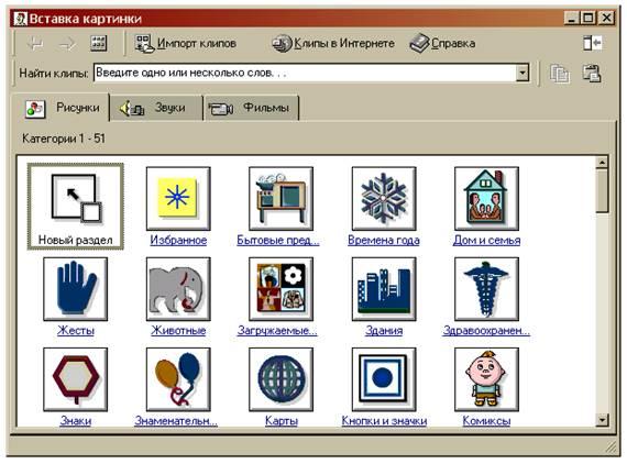 . Чтобы вставить рисунок из галереи MicrosoftClipArt, надо выбрать команду Картинки