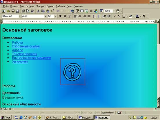 На многих Web-страницах рисунки используются в качестве гиперссылок на другие страницы и документы. Word позволяет создавать графические гиперссылки и включать их в Web-страницы.
