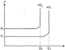 Если экономика находится на промежуточном или классическом отрезке кривой совокупного предложения AS,