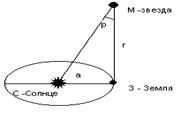 Сперва определяется расстояние до какой-нибудь доступной точки. Это расстояние называется базисом. Угол, под которым из недоступного места виден базис, называют параллаксом