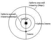 Земля совершает сложные движения: вращается вокруг своей оси (Т=24 ч.), движется вокруг Солнца (Т=1 год), вращается вместе с Галактикой (Т= 200 тыс. лет). Отсюда видно, что все наблюдения, совершаемые с Земли, отличаются кажущимися траекториями. Планеты делятся на нижние и верхние (нижние – внутри земной орбиты: Меркурий, Венера; верхние: Марс, Юпитер, Сатурн, Уран, Нептун и Плутон). Все эти планеты обращаются так же, как и Земля вокруг Солнца, но, благодаря движению Земли, можно наблюдать петлеобразное движение планет. Взаимные расположения планет относительно Солнца и Земли называются конфигурациями планет.
