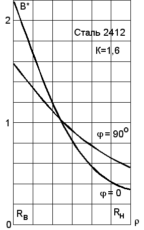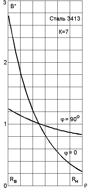 На рис. 2 и 3 представлены зависимости магнитной индукции (в относительной форме) от радиальной координаты в угловых положениях, соответствующих осям магнитной анизотропии (j = 0 и 90о