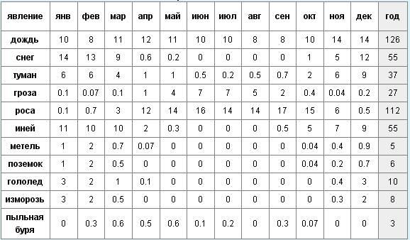 Число дней с различными явлениями.