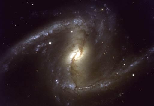 (Рис. 3) — своеобразная «классика» спиральной галактики. Эта массивная галактика имеет диаметр в 200,000 световых лет и удалена от нас на 60 миллионов световых лет. Это одна из галактик из звездного скопления Fornax