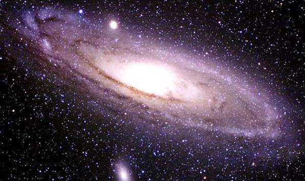 — один из самых близких наших галактических соседей. В промежутке в 2,3 миллиона лет — один из самых далеких объектов, видимых невооруженным взглядом. Андромеда содержит 300 миллиарда солнц и охватывает 130,000 световых лет, что почти вдвое массивней нашей собственной галактики. Галактика — превосходный пример спиральной и предполагается, что наша собственная галактика имеет очень похожую структуру. Андромеда имеет две большие галактики — M32