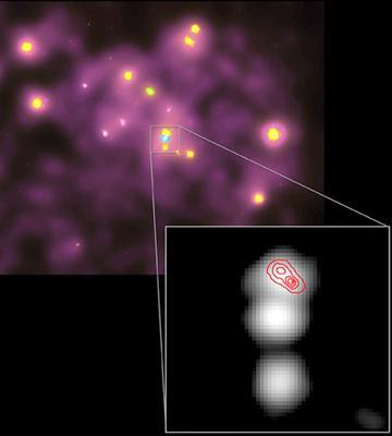 На Рис. 6 изображена центральная область Галактики Андромеда. Синяя точка в центре изображения — «холодный» источник рентгеновского излучения, где зафиксирована супермассивная черная дыра с массой 30’000’000 солнц.