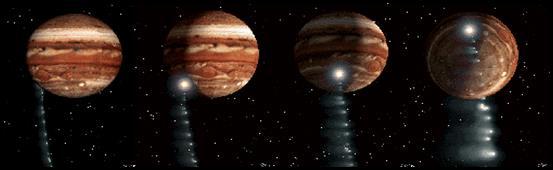Яркой демонстрацией реальности и грандиозности масштабов космических ударов по планетам стала серия взрывов в атмосфере Юпитера, обусловленная падением на него фрагментов кометы Шумейкер-Леви 9 в июле 1994 года. Ядро кометы в июле 1992 года в результате сближения с Юпитером разделилось на фрагменты, которые впоследствии столкнулись с планетой-гигантом. В связи с тем, что столкновения происходили на ночной стороне Юпитера, земные исследователи могли наблюдать лишь вспышки, отражённые спутниками планеты. Анализ показал, что диаметр фрагментов от одного до нескольких километров. На Юпитер упали 20 кометных осколков.
