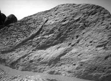 овторяющийся характер изменений в полярных шапках прямо указывает на то, что эти белые области состоят из обычного водяного снега, который тает при возрастании температуры .Не исключено, что они состоят из замершего углекислого газа, или "сухого льда". Кроме полярных шапок на Марсе отмечаются такие образования, как вулканы, горы. Например, кратер горы Арсия - в поперечнике около 125 км. С вулканами и поднятиями Фарсида связаны огромные системы трещин и гряд, некоторые из них тянутся на 1000 км и в целом имеют радиальное направление из центральной области больших вулканов. Эти трещины и гряды свидетельствующих о напряжениях, возникших при поднятии всей области Фарсида. Помимо этих гор, вулканов и потоков лавы конвекция в некогда расплавленных недрах Марса породила величественные рифовые долины, вероятно, родственные большим океаническим рифам на Земле, которые выходят на сушу в Эфиопии. Очень загадочным представляется еще одно образование - лицо (см. фото в конце). Некоторые считают, что это следы цивилизации. Однако, скорее всего это следы различных процессов, протекающих на Марсе.