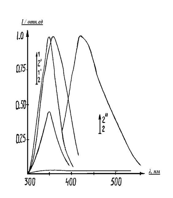 Рисунок 16 – Спектры флуоресценции триптофана (l) и гистидина(2)