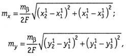 6) Точки пересечения этих окружностей являются искомой точкой, координаты которой можно определить через ее свойства.